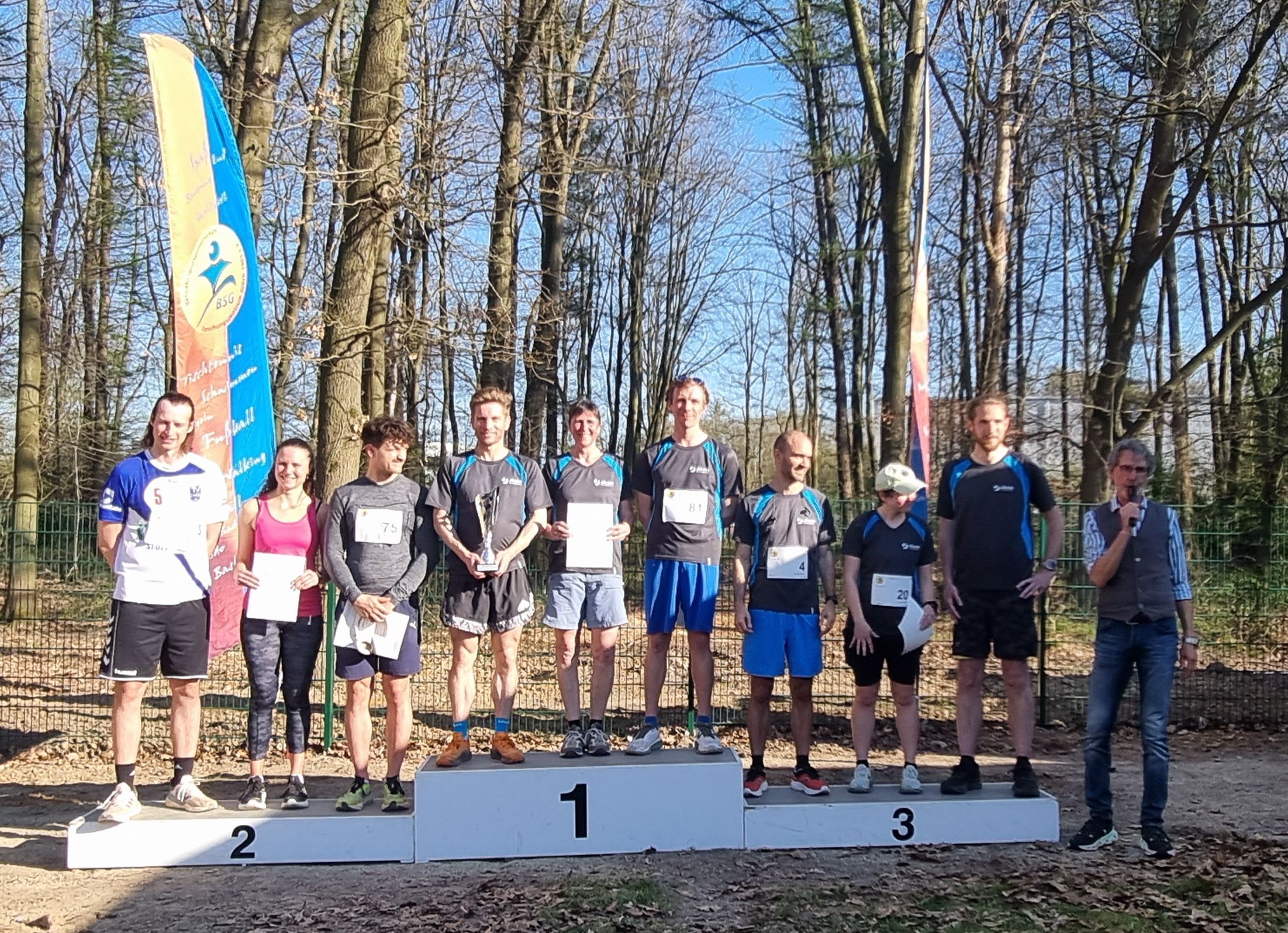 Bei idealem Laufwetter mit Temperaturen um 21 Grad, fand am Freitag, den 04. April, der diesjährige BSG-Frühjahrslauf im Stetternicher Forst statt. Insgesamt 83 Läufer*innen gingen über die Strecken von 4.300 m (18 Starter*innen) und 7.600 m (65 Starter*innen) an den Start.