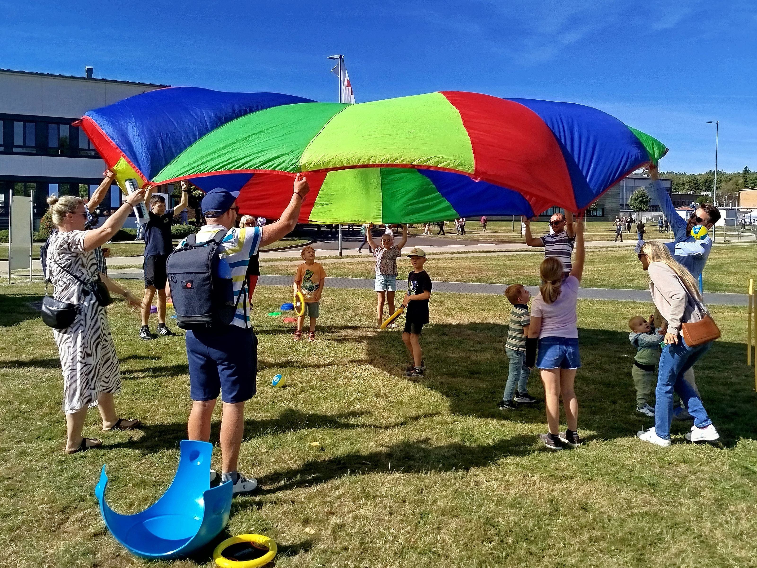 Während die Kinder aktiv und voller Freude spielten, konnten die Eltern entspannt zuschauen, oder auch gerne selber mitmachen. Nicht selten mussten die Eltern ihre Kinder nachdrücklich bitten, den Rundgang über den Campus fortzusetzen, da die Kleinen lieber noch länger beim Spielparcours verweilen wollten.